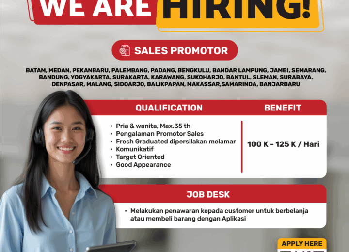 MPO Sales Promotor Qualification 1. Pria & wanita, Max. 35 th2. Pengalaman Promotor Sales3. Fresh Graduated dipersilakan melamar4. Komunikatif5. Target Oriented6. Good Appearance Job Desk – Melakukan penawaran kepada customer